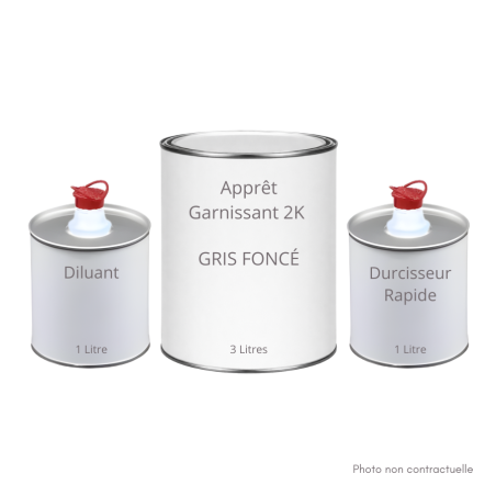Pack apprêt garnissant gris foncé 3L + Durcisseur rapide 1L + Diluant 1L
