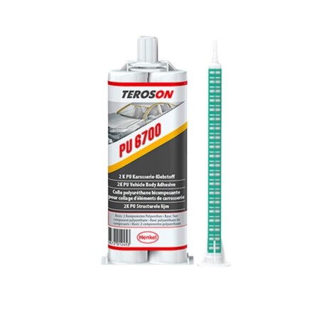 TEROSON® PU 6700 est un adhésif polyuréthane bi-composant pour le collage d'une grande variété de substrats comme l'acier inoxydable, l'aluminium et d'autres métaux, les plastiques, le bois et les surfaces peintes (non recommandé pour le PP et le PE). Il peut être soudé par points et durcit rapidement, quelles que soient les conditions environnementales. Sec au toucher en 30 minutes, son application est facile avec le distributeur TEROSON® HAND GUN (cartouches de 2x200 ml) et une buse auto-mélangeuse adaptée.