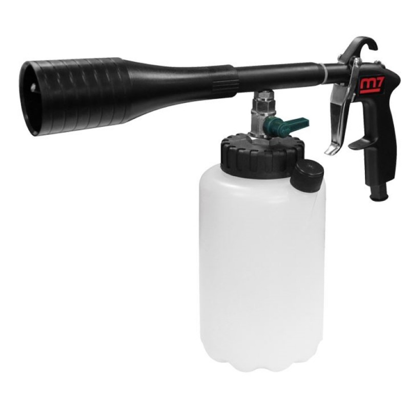 Pistolet de nettoyage capacité 1L / Buse métallique rotative / Idéal pour enlever les taches des tissus ou des moquettes / Équipé d'une valve permettant le nettoyage et le séchage / Idéal pour dégraisser les carrosseries (étape intermédiaire entre le ponçage et la peinture) / Idéal pour nettoyer les blocs moteur, les radiateurs et toutes traces d'huile.