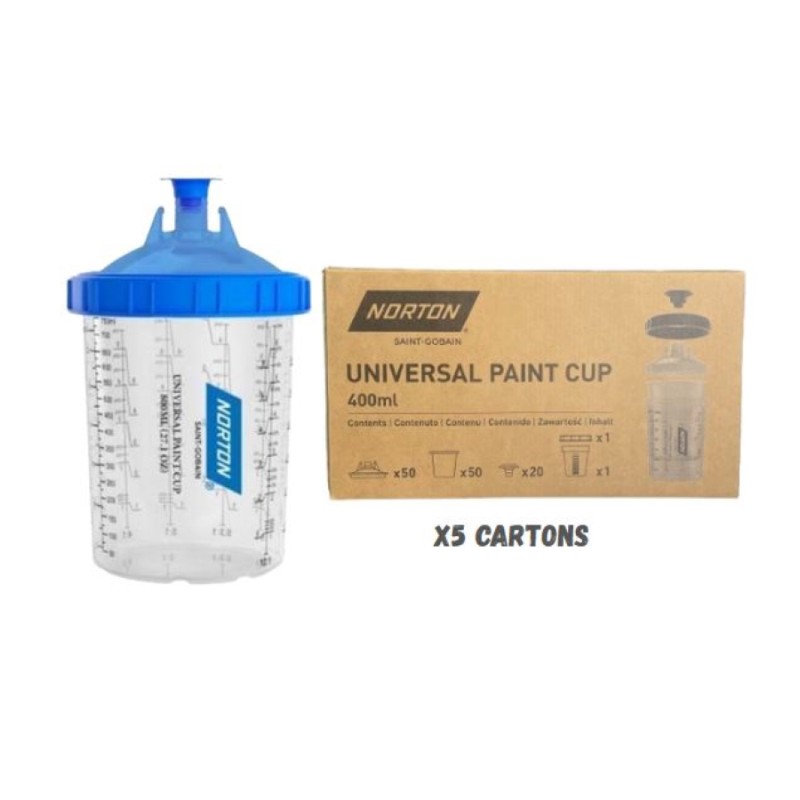 PACK DE 5 CARTONS DE POCHE UNIVERSAL PAINT CUPS 125µm NORTON 400mL