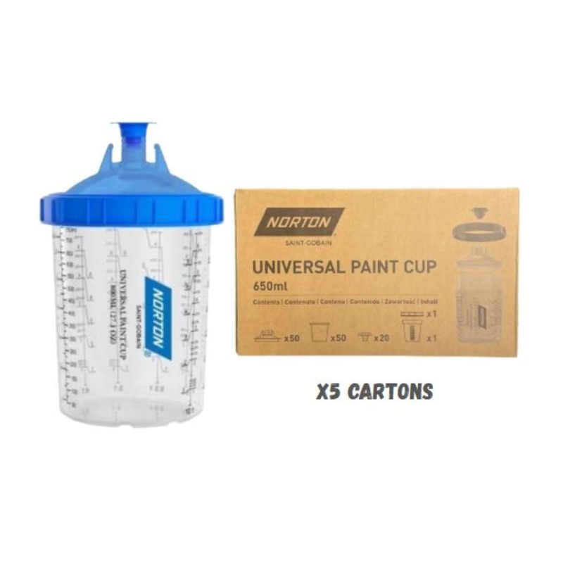 PACK DE 5 CARTONS DE POCHE UNIVERSAL PAINT CUPS 125µm NORTON 650mL