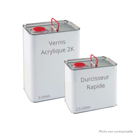 Pack vernis haute performance composé d’un vernis transparent 5 L et d’un durcisseur rapide 2,5 L. Offre une excellente brillance, une très bonne résistance et un séchage accéléré pour un gain de temps optimal en application. Idéal pour des finitions soignées et durables, avec une application facile et un rendu professionnel. Dilution 2:1 (soit 50% de durcisseur).